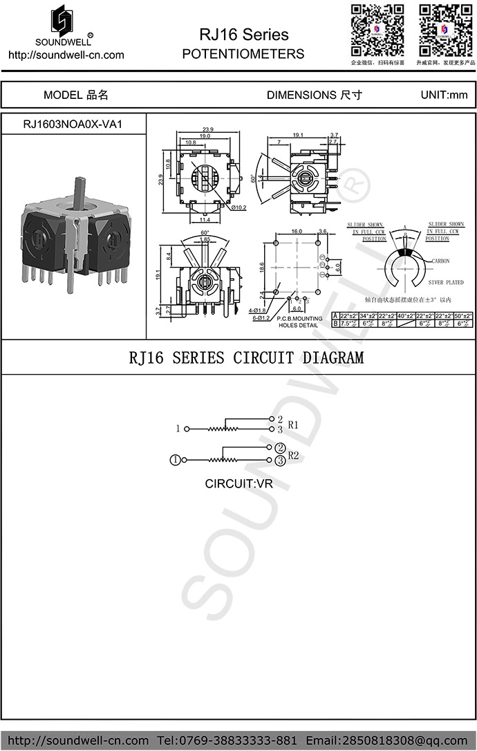 | Potentiometer model: | RJ16 series |