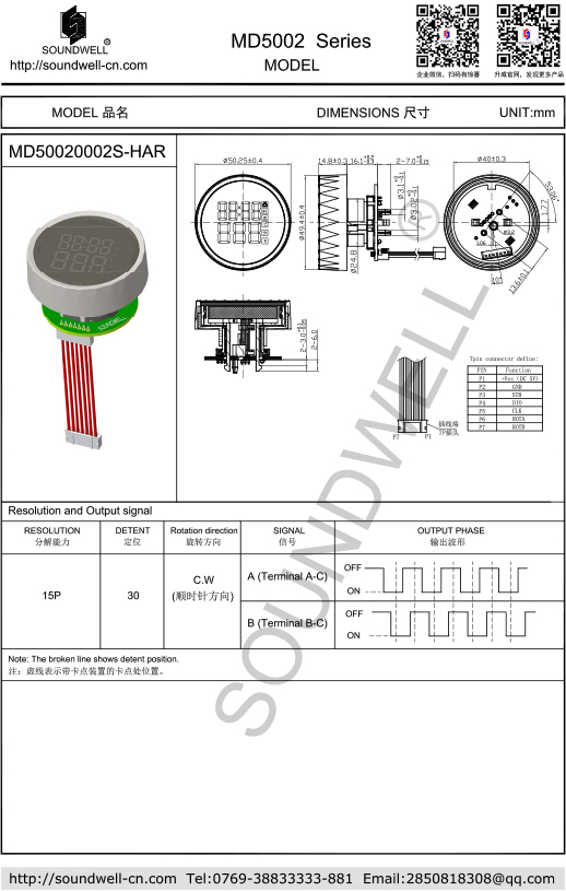 Rated voltage: DC 5V; Maximum operating current: 100mA; Working temperature: -40℃~80℃; Mechanical rotation angle: 360°; Number of detent: 30 Pulses: 15 Rotational torque: 150±70gf.cm; Rotational life: 30,000 cycles Min; |