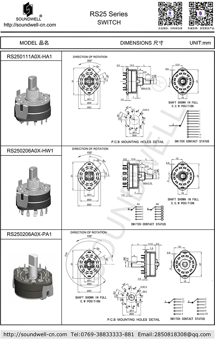 | Main Specifications: | Dimensions: 25mm Rated power: DC 30V 0.3A Contact resistance: 50mΩ Max Number of positions: 2~12 Operating temperature: -10℃~70℃ Rotational life: 10,000 cycles Min |