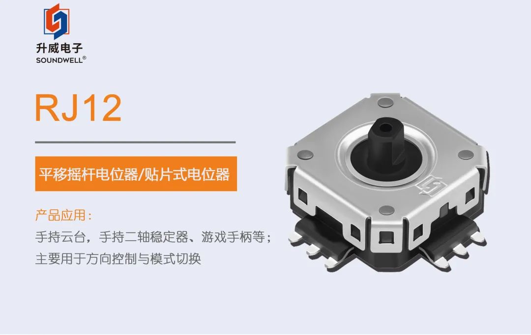 今天,我們來介紹SOUNDWELL的這款應用于手持云臺,手持三軸穩定器的平移搖桿電位器——RJ12