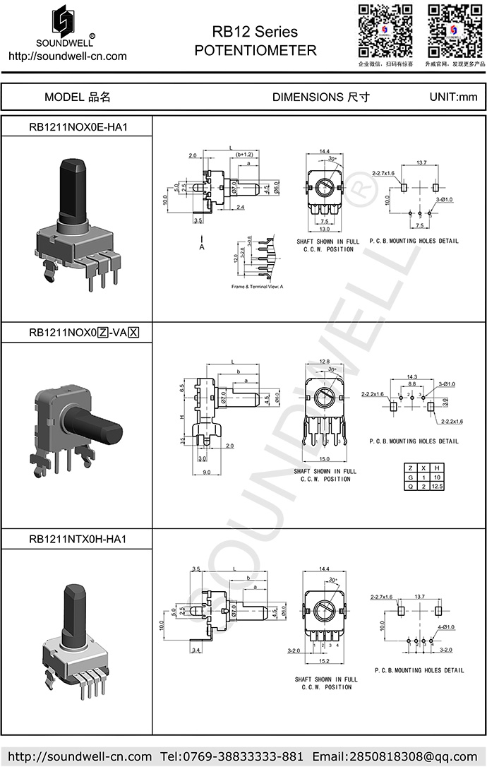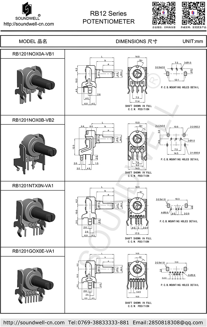 RB12可調電位器優點:體積較小,軸柄為塑膠絕緣軸,產品性能穩定, 電路、軸形及軸長、安裝方式有多種可供選擇。