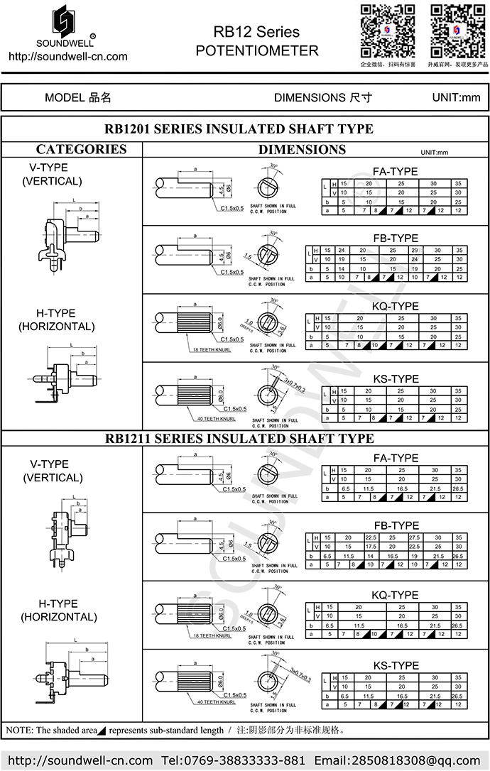 - RB12電位器塑膠軸系列