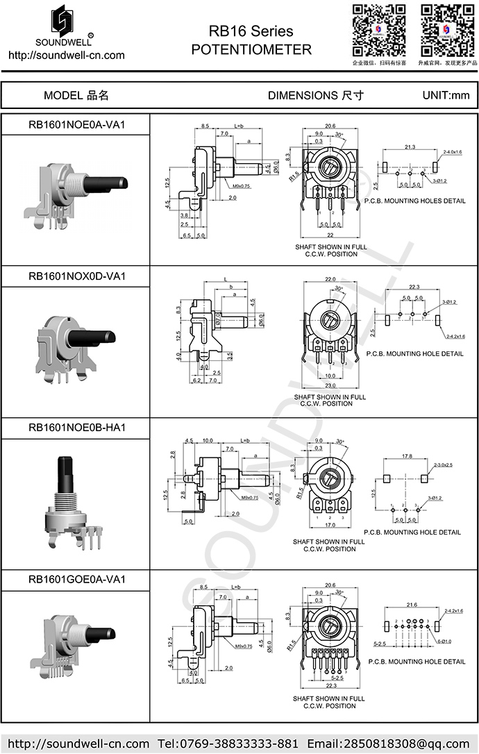 - RB16電位器塑膠軸系列