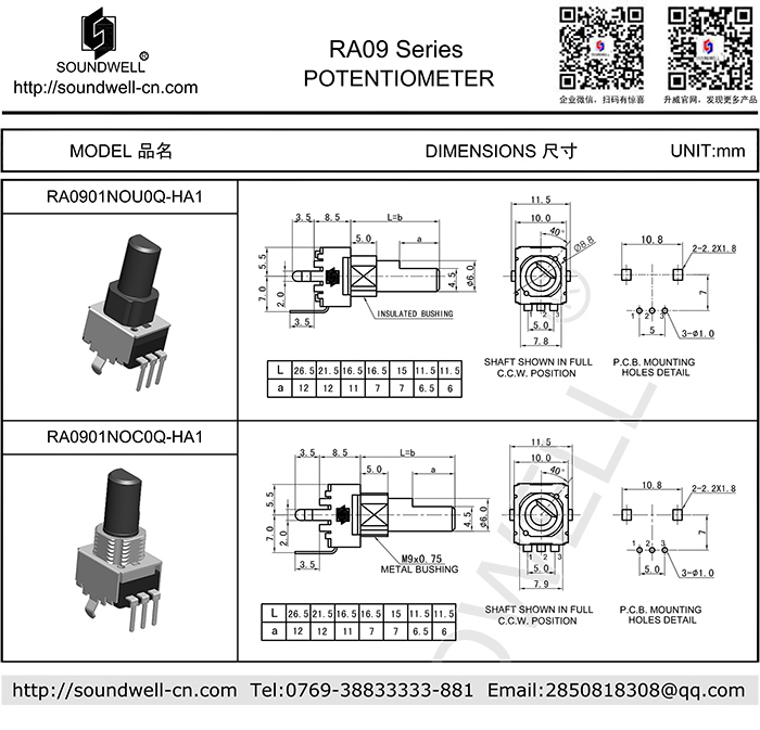 - RA09電位器金屬軸系列