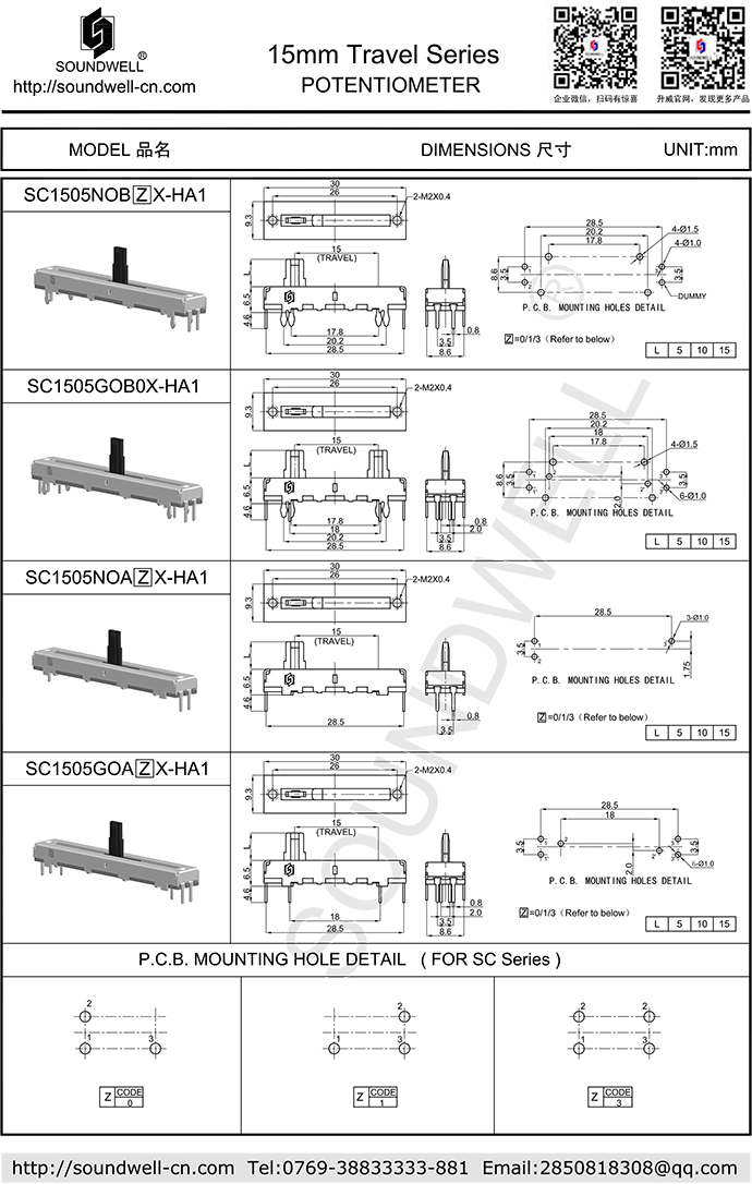 SC1505直滑電位器產品規格參數